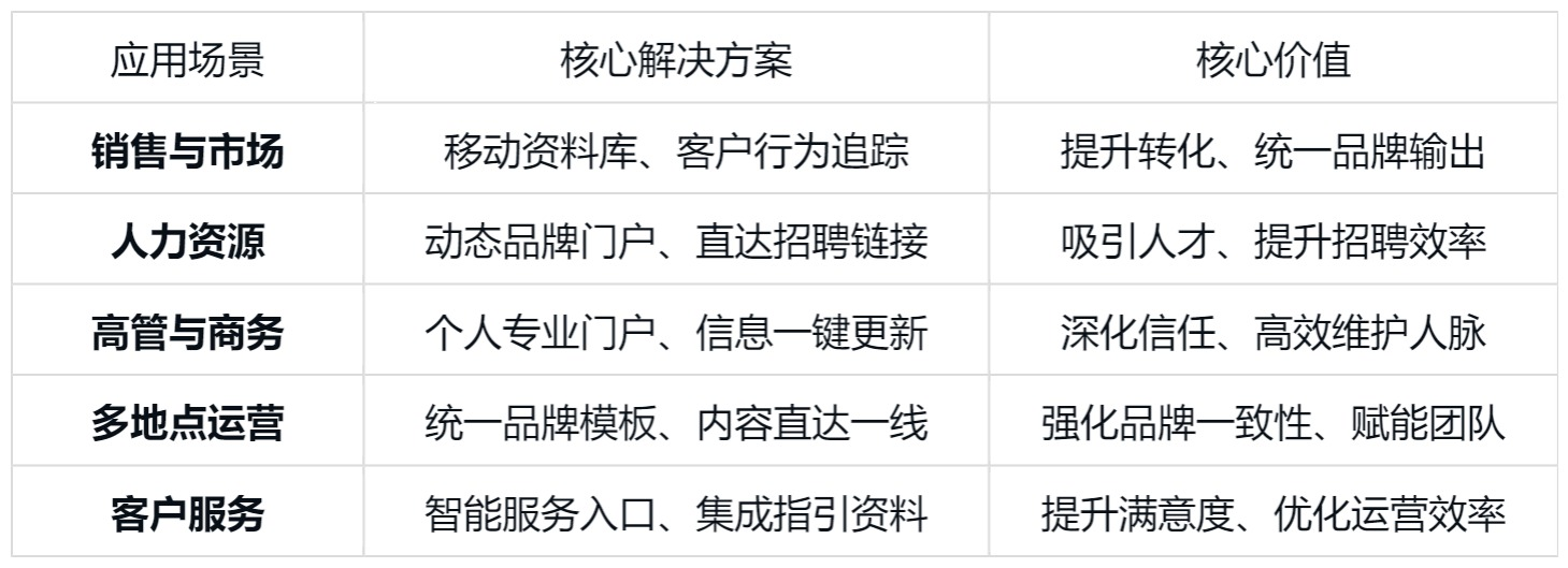 当数字名片从个人工具升级为企业级解决方案时,其应用场景便呈现出惊人的多样性和深度。下表揭示了它如何在企业不同部门中扮演关键角色: